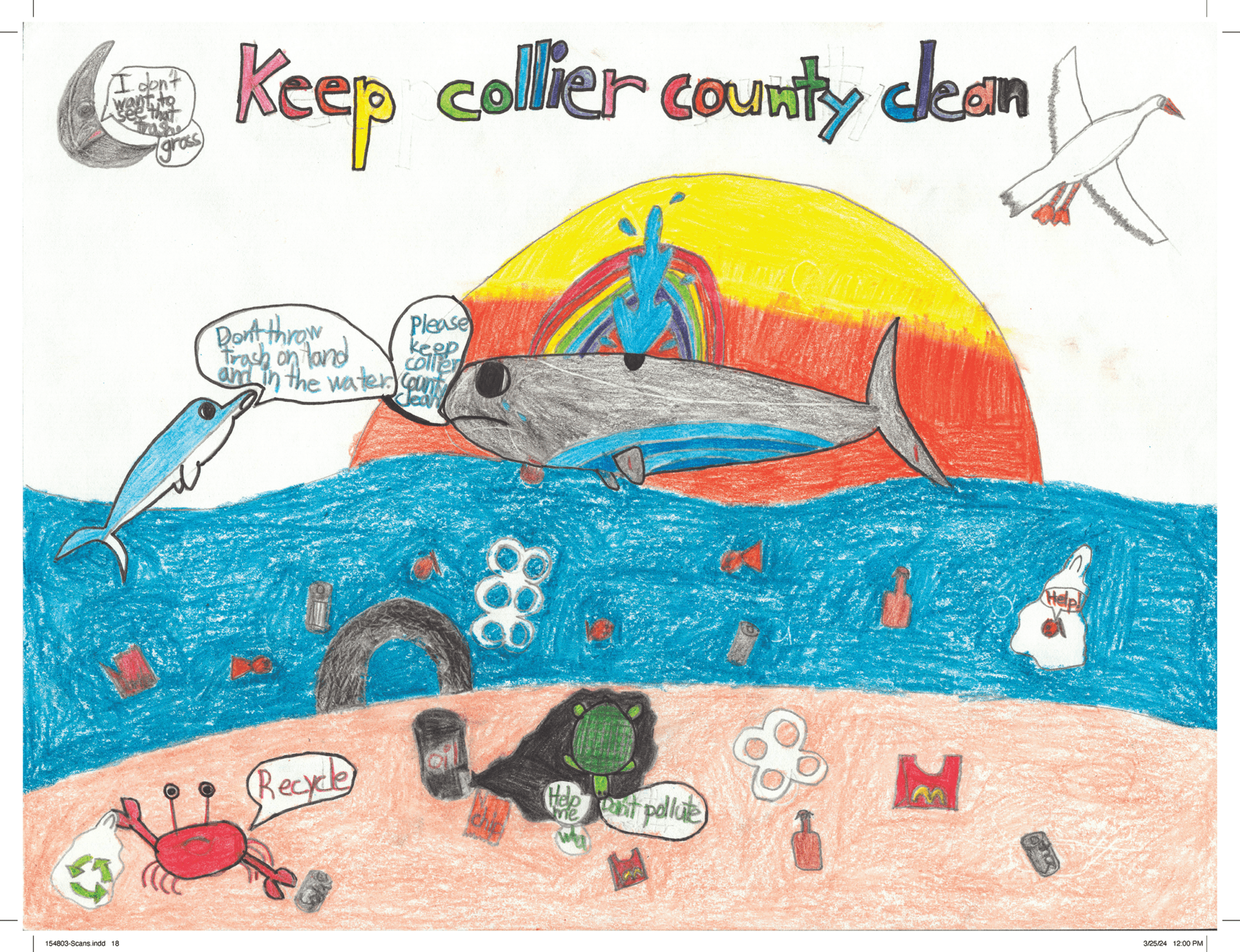 In celebration of the students’ creativity and participation in protecting the environment, the artworks were displayed at the Board of County Commissioners Chambers. Waste Management has added the artwork to its fleet of vehicles servicing Collier County and WastePro has added the artwork to its trucks servicing the Immokalee area.