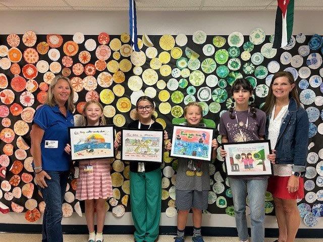 - from left to right: Dana Alger of Collier County Solid Waste, Ellis Trupka, Mya Tam, Adeline Buzas, Cat Van Der Meulen, and Arnav Koyyalamudi from Laurel Oak ES
